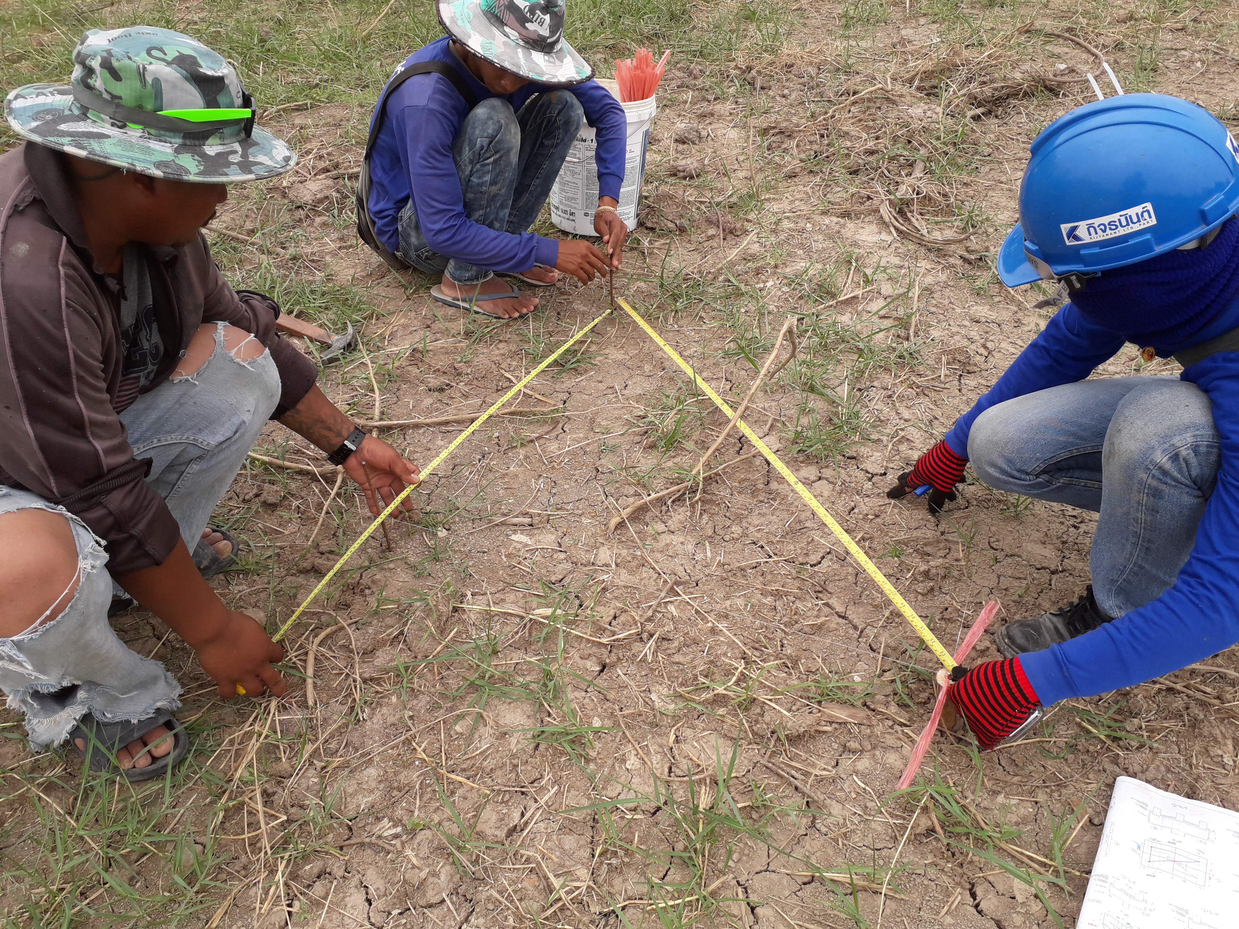ตรวจสอบงานวางผังหาตำแหน่งเข็มก่อนตอกเสาเข็ม